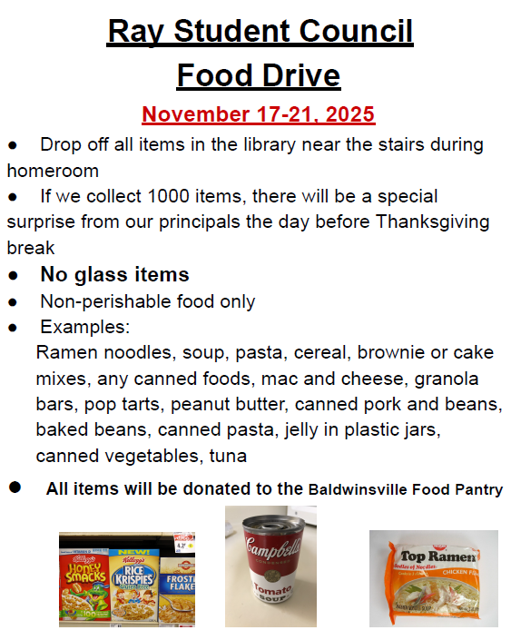 Ray Families:As a reminder, parent drop off is between 7:00am and 7:25am. If you arrive after 7:25am, drop your student off at the flag pole and have them use the front entrance.Thank you ,Ray Adm...